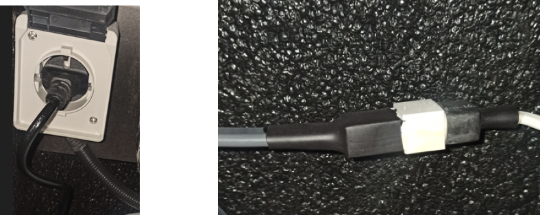 Расположен в нижней части аквамата. Подключен от розетки (если тепловентилятор) (рисунок 3), или от фишки (если теплый пол) (рисунок 4)