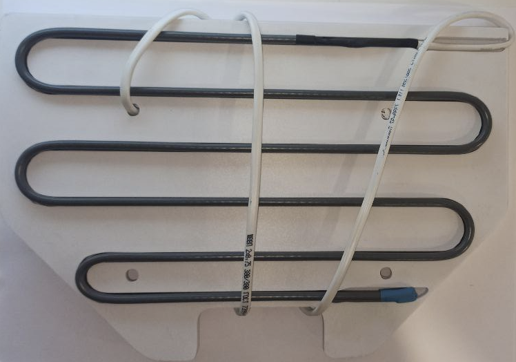 Расположен непосредственно на трубке выдачи воды (рисунок 2) и предотвращает замерзание носика розлива при отрицательных температурах. Работает постоянно, при включении специальной кнопки  (рисунок 3). Подключается от блока питания - 12 В, расположенного на панели управления (рисунок 4). Конструкция отличается простотой и надежностью. В случае выхода из строя меняется полностью.&#x20;